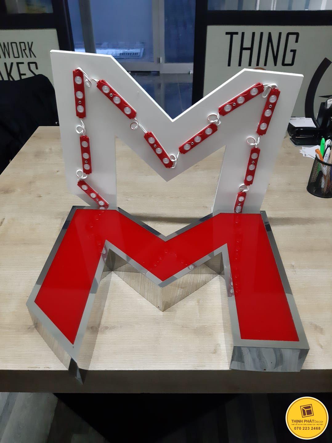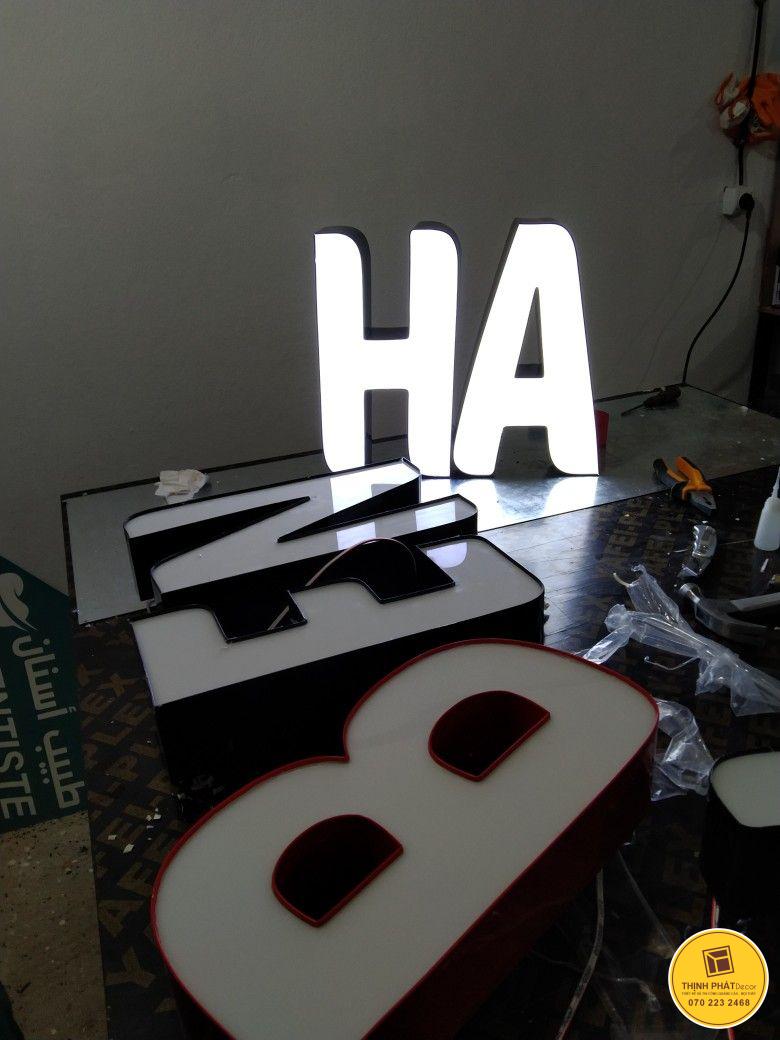 Với cấu tạo, phần mặt chữ làm bằng mica Đài Loan xuyên sáng. Chữ nổi inox được gia công cắt CNC uốn nổi làm phần hông cho chữ nổi. Kết hợp với hệ thống đèn led được gắn bên trong chữ, chiếu sắng hắt vào mặt mica.