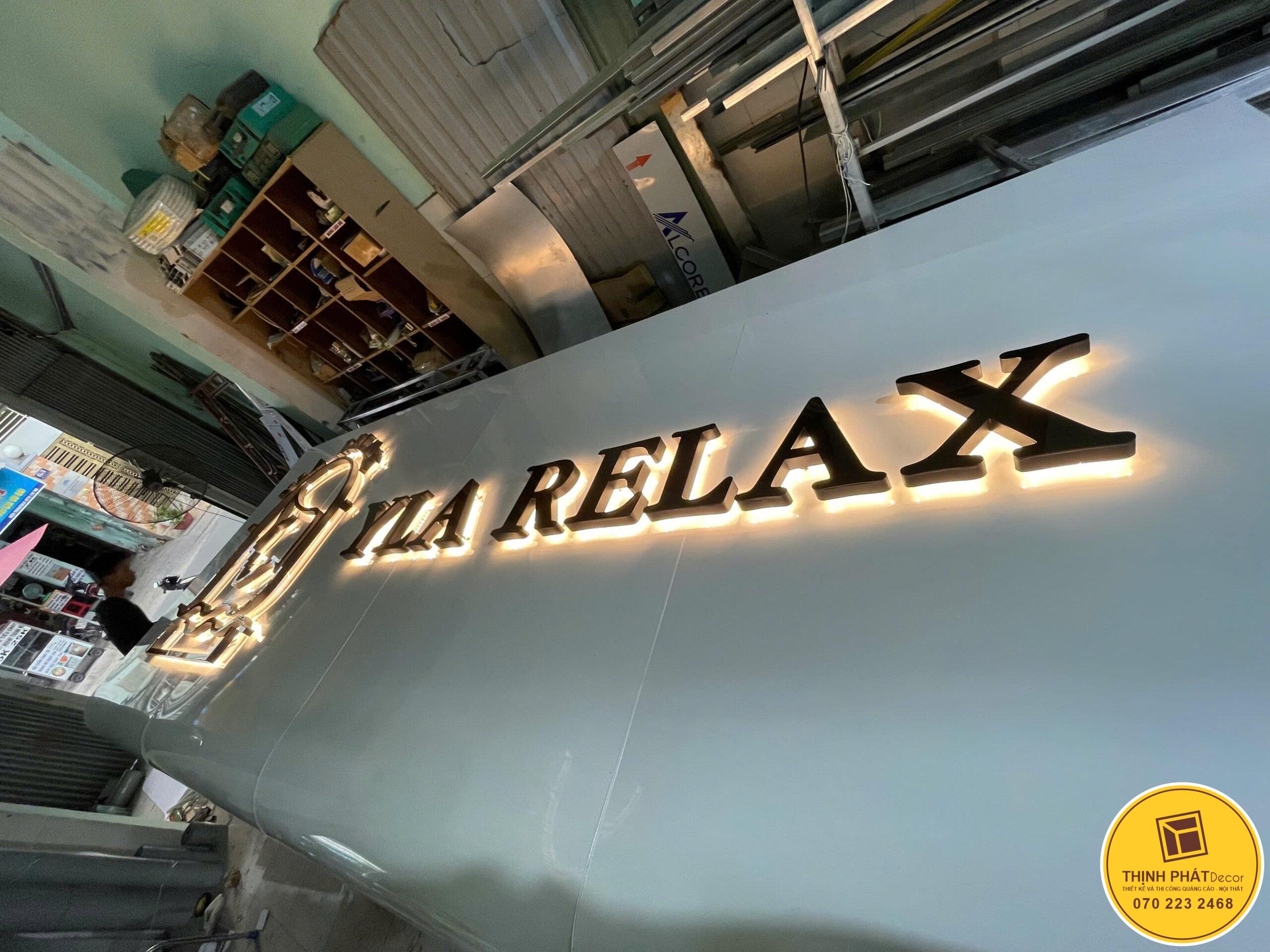 Bảng hiệu Alu chữ nổi inox sáng đèn hắt chân