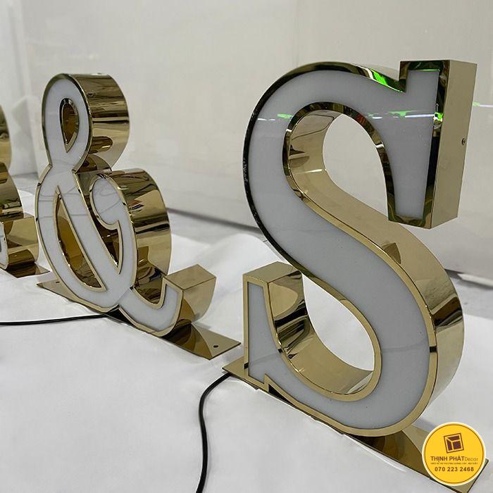 | 2 | Chữ inox vàng gương mặt mica | Inox 304 mạ vàng gương, mặt mica trong hoặc trắng sữa, LED hắt trong, sang trọng – đẳng cấp | 1.300.000 – 1.600.000 |