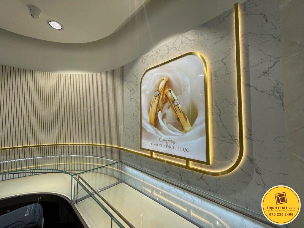 Inox vàng gương tạo cảm giác sang, hợp ngành thời trang, mỹ phẩm, thẩm mỹ. Inox xước giảm chói, hạn chế vết tay, bền bỉ khi tiếp xúc thường xuyên. Hai bề mặt này kết hợp LED hắt chân càng nổi.
