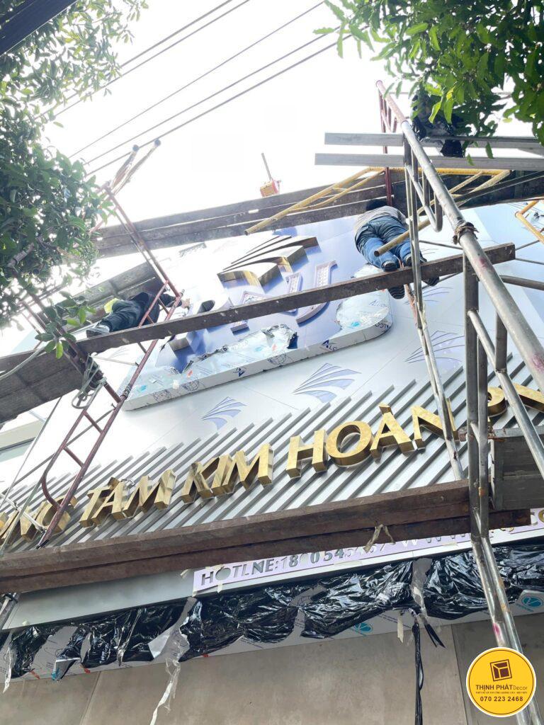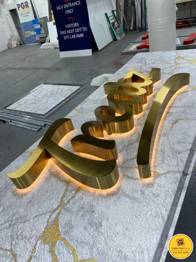 - Thợ thi công phải hàn khéo léo để chữ chắc chắn. Cuối cùng, kỹ thuật mạ vàng hoặc inox gương tạo hiệu ứng sáng bóng.