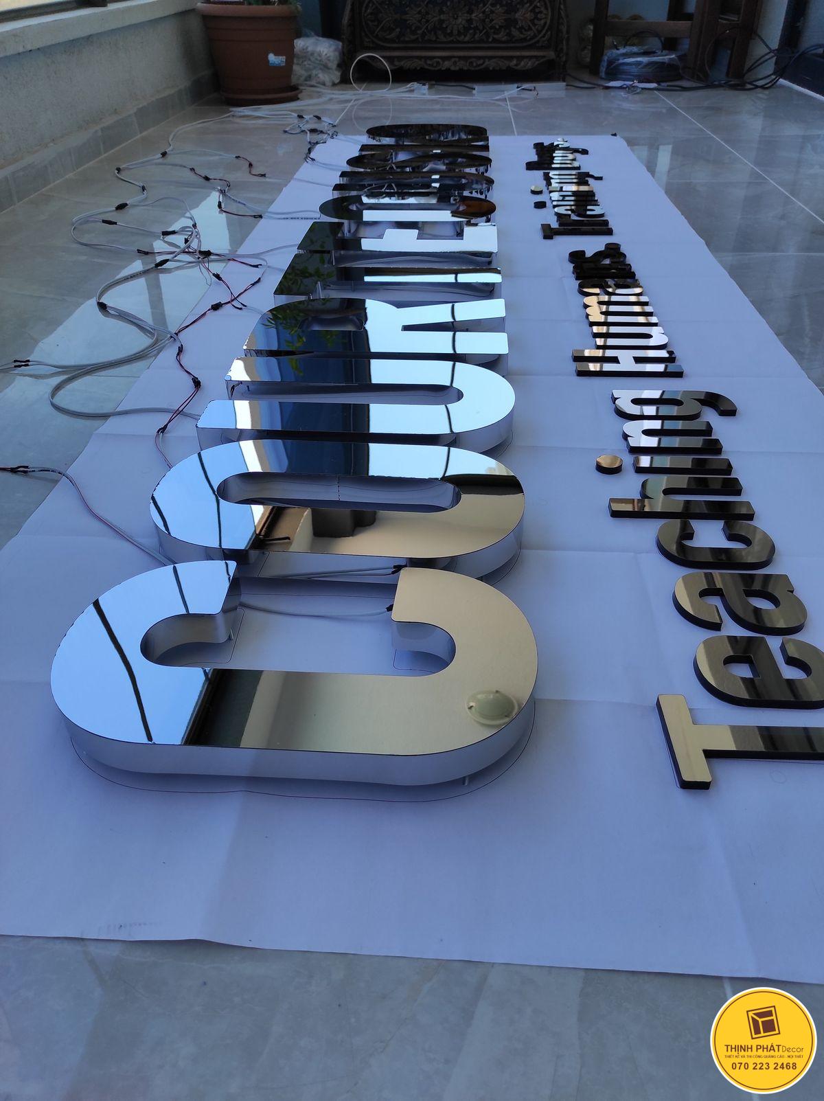 Chữ inox gương sáng bóng giúp tăng tính nhận diện thương hiệu và sự uy tín.