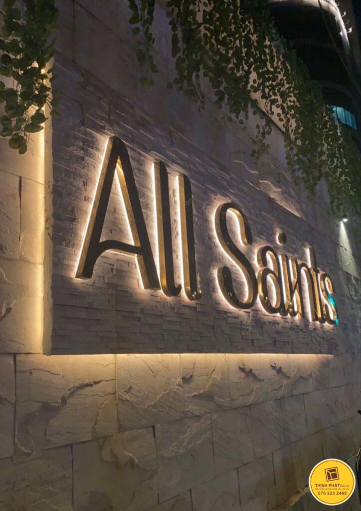 Chữ inox có thể kết hợp đèn led rất đẹp mắt. Mẫu chữ inox hắt sáng chân là một xu hướng hot. Ánh sáng dịu nhẹ hắt vào tường vô cùng tinh tế. Nó tạo ra một không gian rất ấm cúng và sang trọng. Bên cạnh đó là mẫu chữ inox mặt mica xuyên sáng. Mặt mica giúp ánh sáng tỏa ra đều đặn và nổi bật.